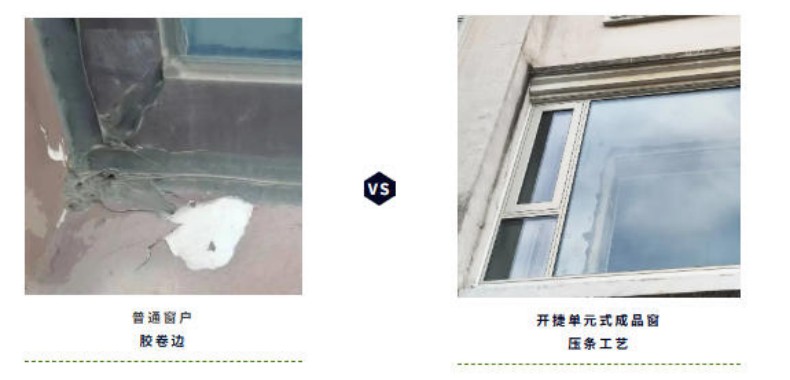 開捷單元式成品門窗的壓條工藝則完美規避了這些弊端。壓條結構可將門窗的各個部件緊密連接在一起,不只使門窗表面更加平整、整潔,還提升了門窗的密封性和耐用性。